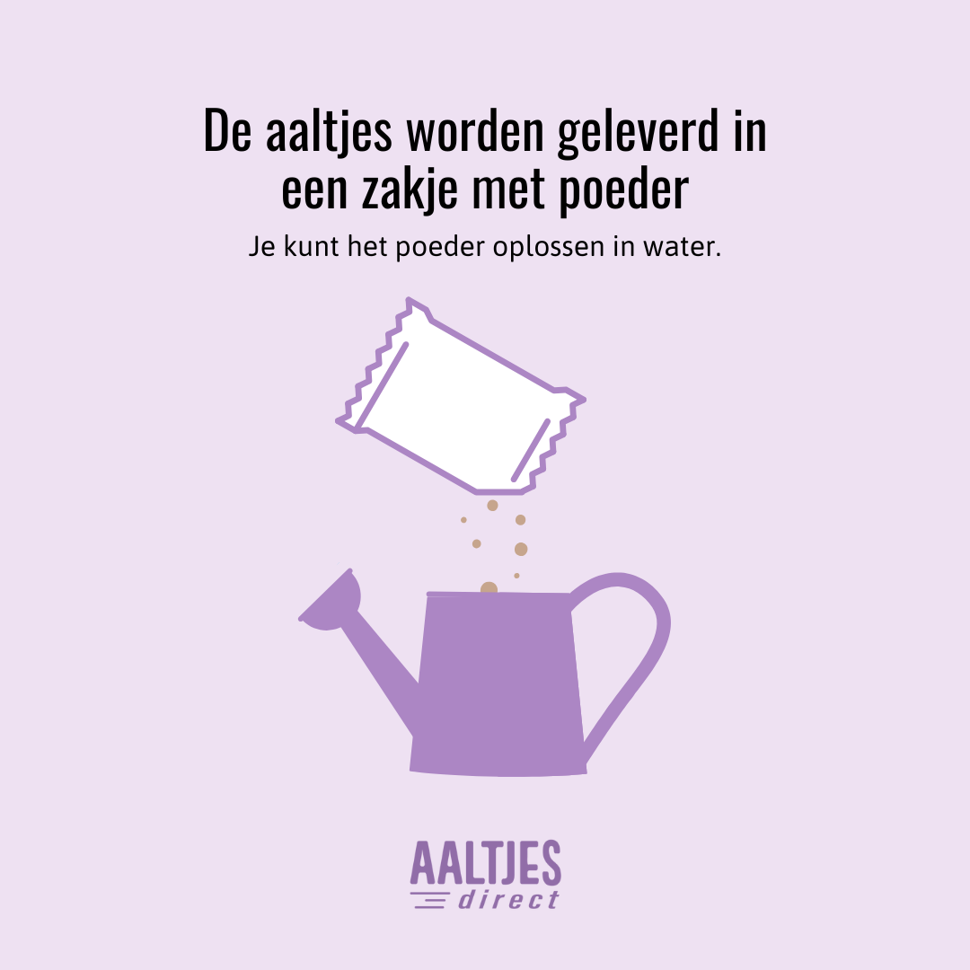 Gebruik de aaltjes zo snel mogelijk na ontvangst en bewaar ze tot maximaal één week in de koelkast. De oplossing van aaltjes in water kan niet bewaard worden.