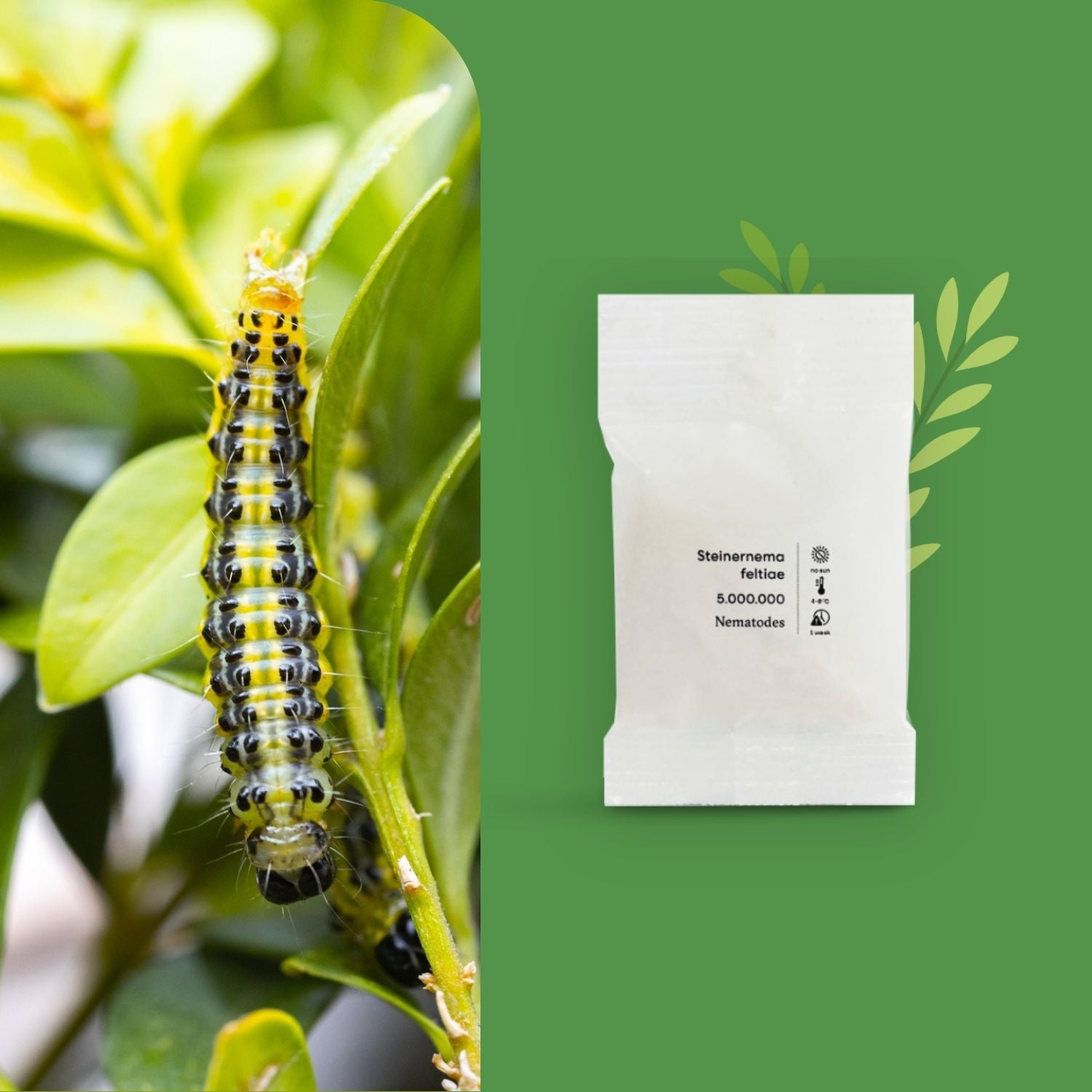 Een verpakking van 5 miljoen aaltjes is genoeg voor 10 m² tuin of zo’n 10 kamerplanten (potdiameter ca. 40 cm). Heeft u minder planten? Geen probleem: aaltjes zijn volledig veilig en kunnen niet worden overgedoseerd.