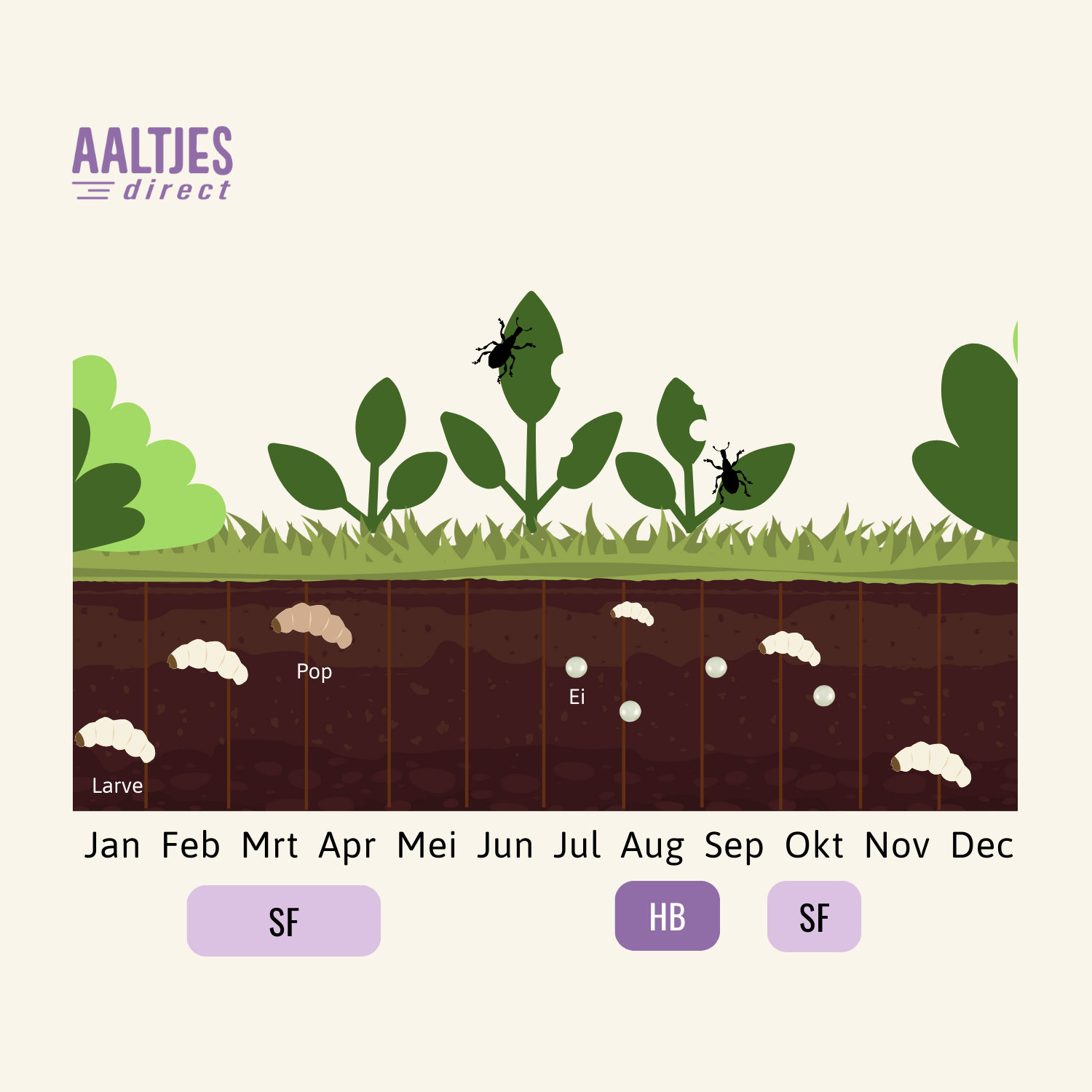 Aaltjes (nematoden) zijn microscopisch kleine wormpjes die van nature in de bodem voorkomen en helpen bij het bestrijden van bepaalde insectenplagen. Ze dringen de plaag binnen en doden de plaag van binnenuit.