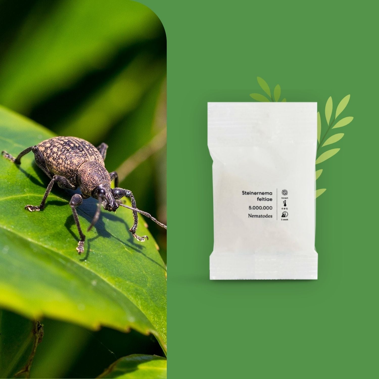 Een verpakking van 5 miljoen aaltjes is genoeg voor 10 m² tuin of zo’n 10 kamerplanten (potdiameter ca. 40 cm). Heeft u minder planten? Geen probleem: aaltjes zijn volledig veilig en kunnen niet worden overgedoseerd.
