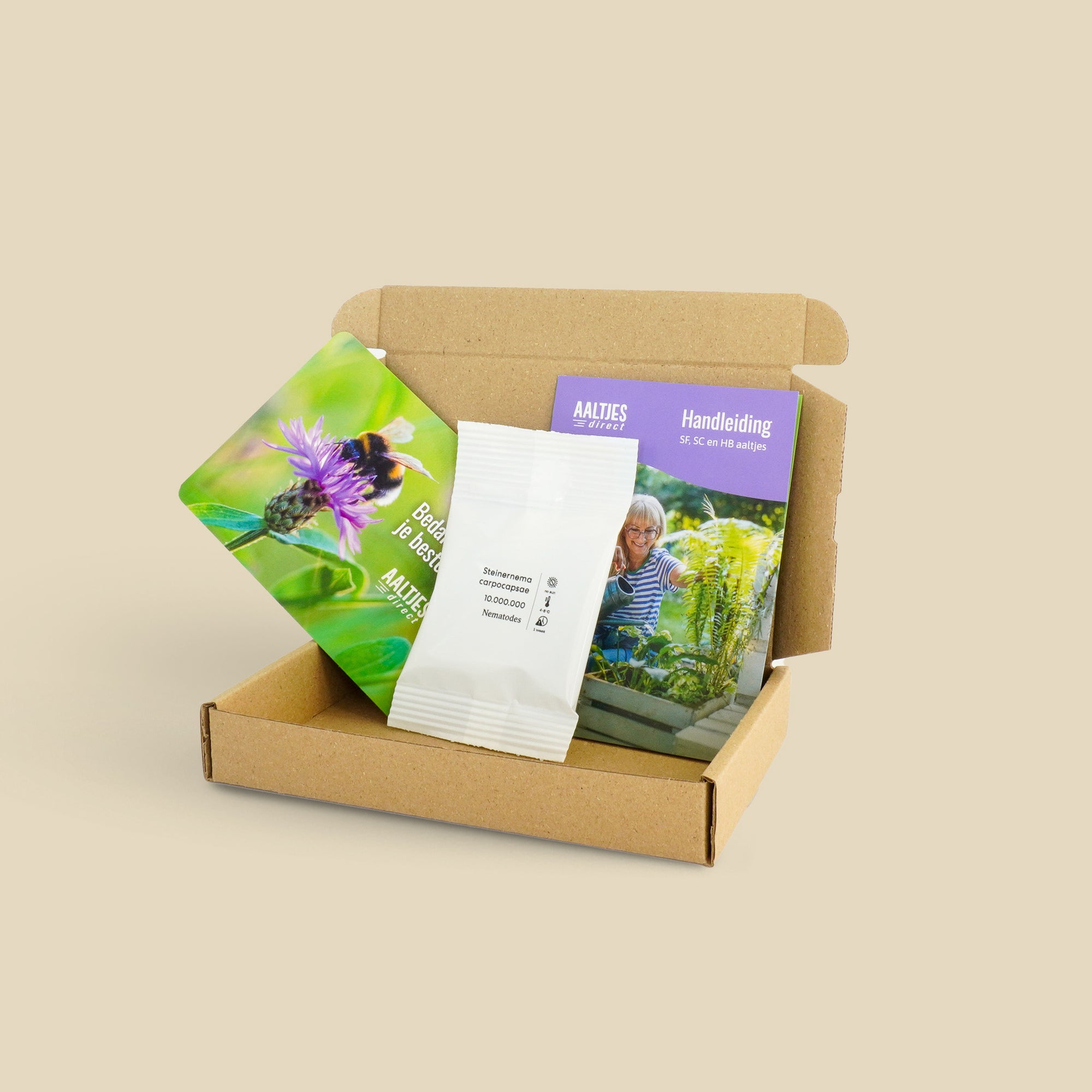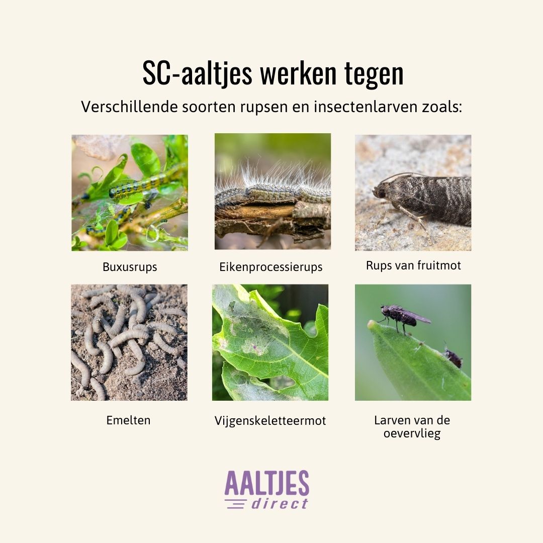 De aaltjes zijn microscopisch klein en worden eenvoudig met water over de aarde of het gazon uitgegoten. Eenmaal in de bodem gaan ze actief op zoek naar de larven van schadelijke insecten. Ze dringen de larven binnen en schakelen ze van binnenuit uit, waardoor de levenscyclus wordt doorbroken. Het resultaat: minder insectenschade en planten die zich weer gezond kunnen ontwikkelen.